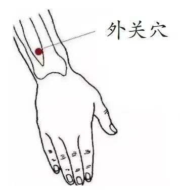 操作方法:拇指置于外关穴,利用拇指指甲掐揉外关穴,力度适中,掐揉1~2分钟。
