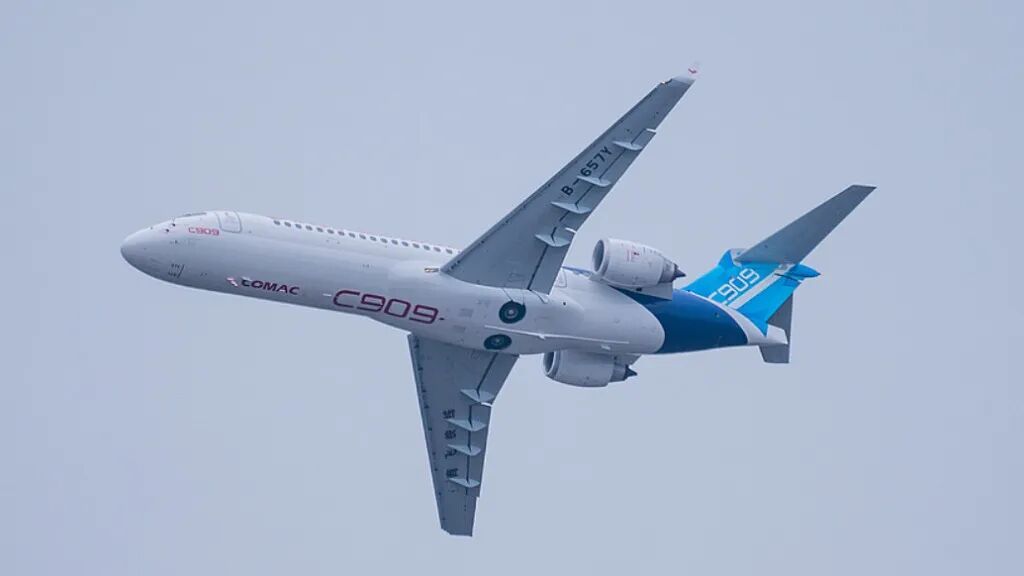 我国自主研制的支线客机ARJ21,后新增商业名称为C909。